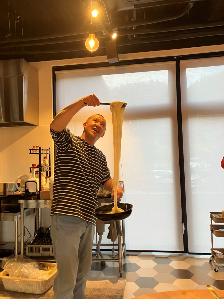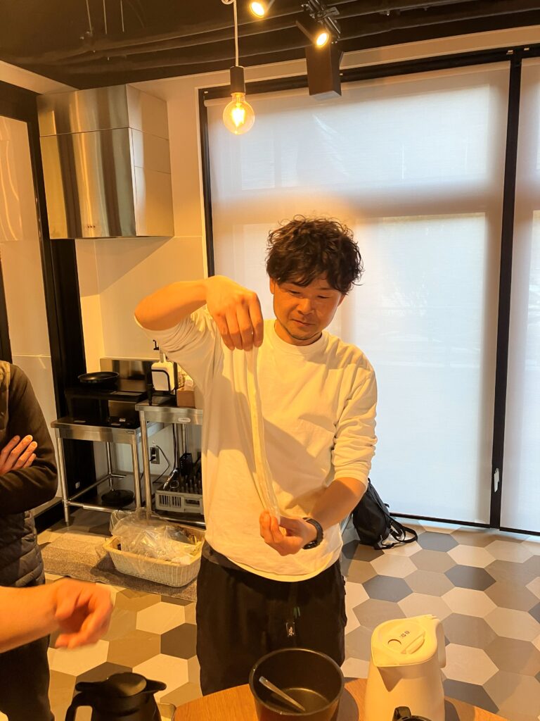 大田原チーズステーションの髙橋さんによるさけるチーズ作り体験。