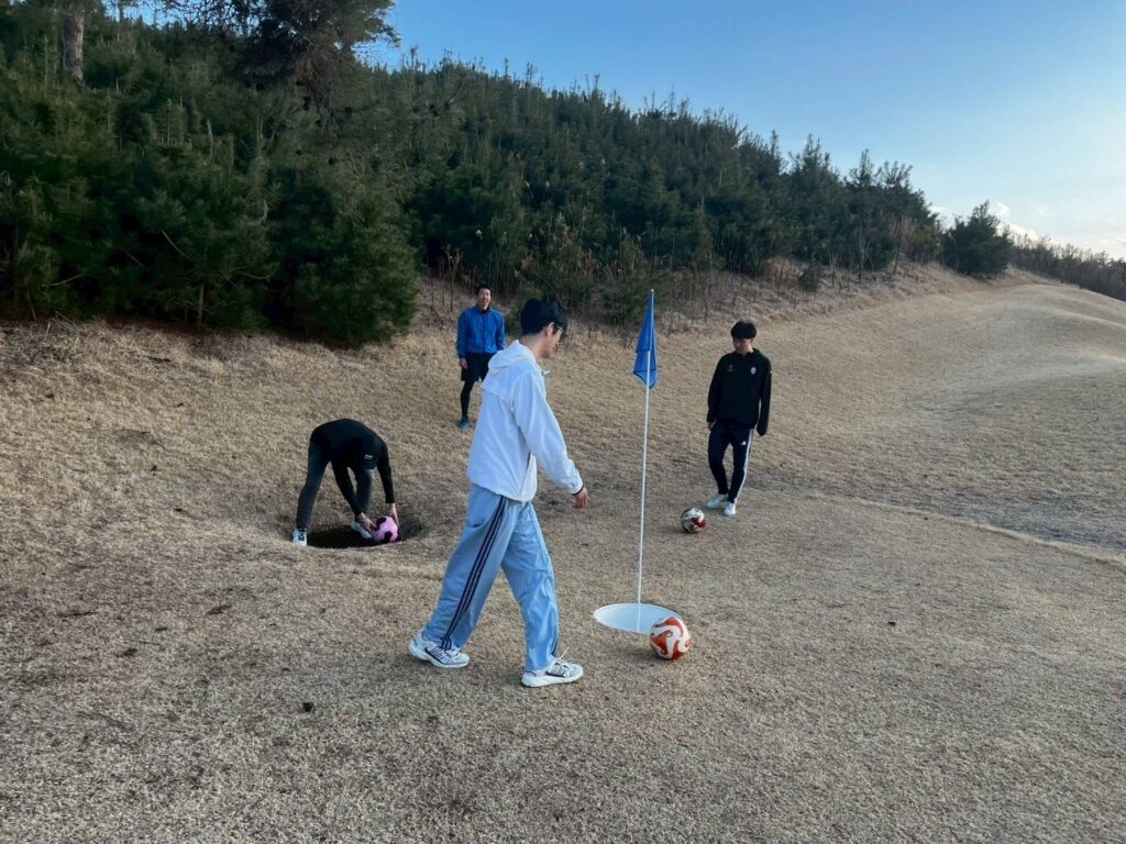 「趣味というかフットゴルフやってます。」「じゃあみんなでやりましょう。」