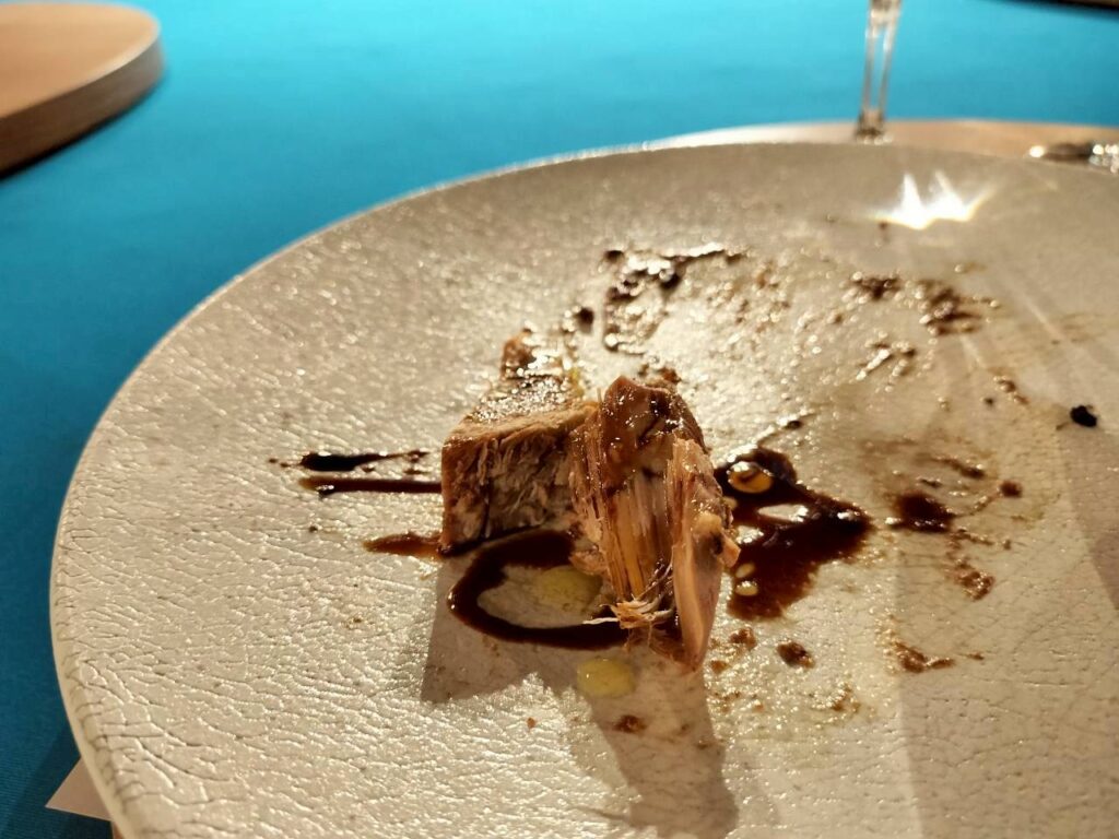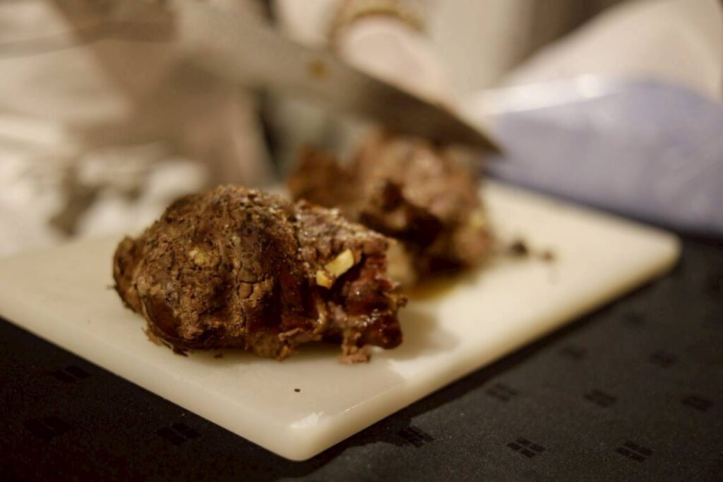 夜のLeu.では、田口シェフが静かにナイフを動かしながら、