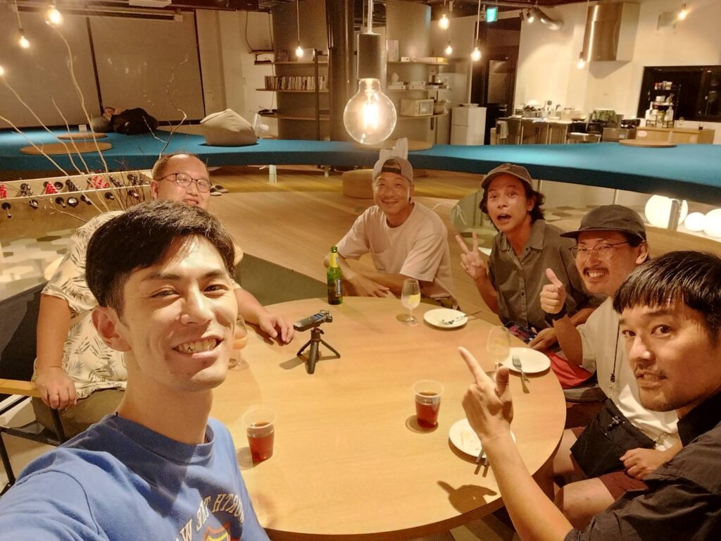 程よく酔っぱらった大人たちがテーブルに集まりポッドキャストがスタート!