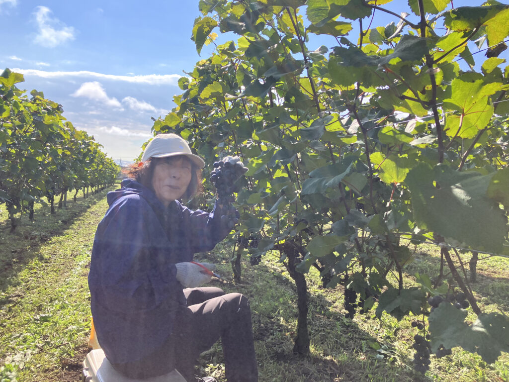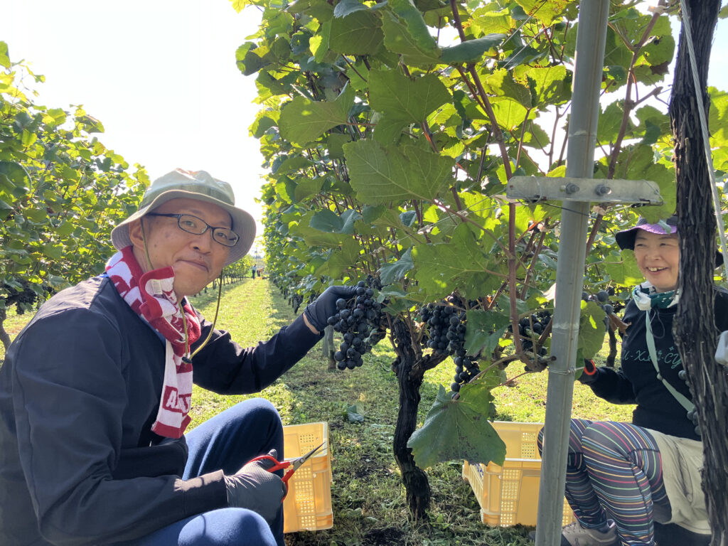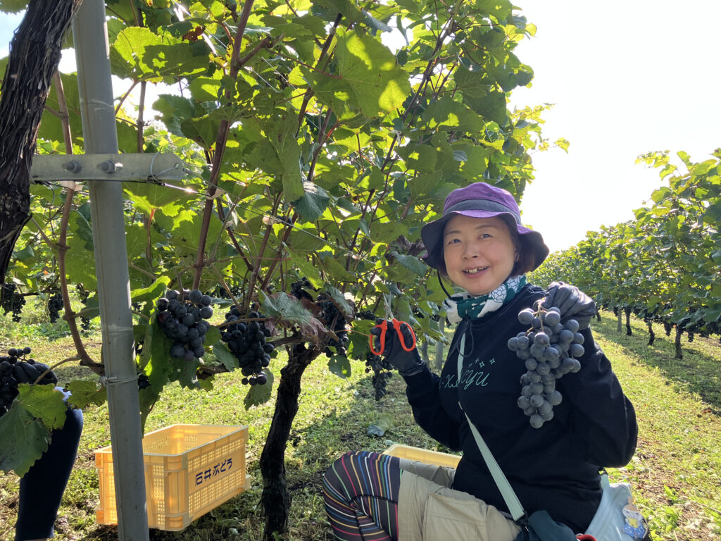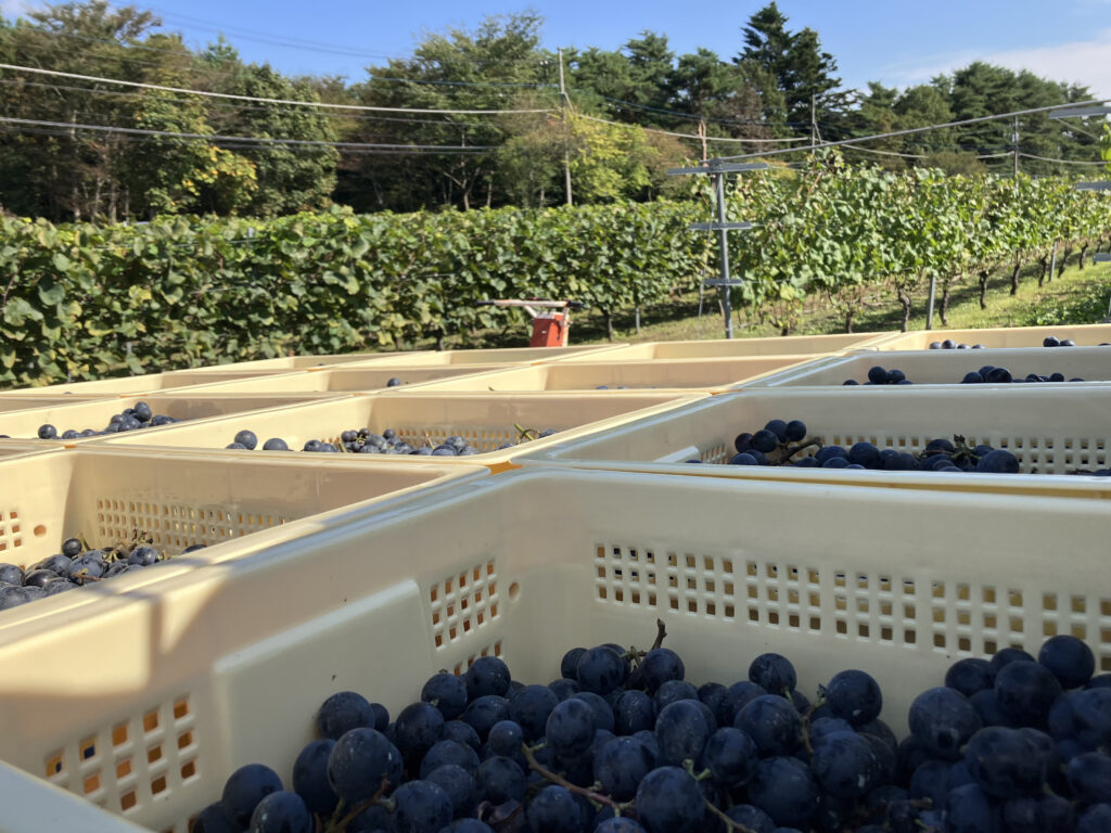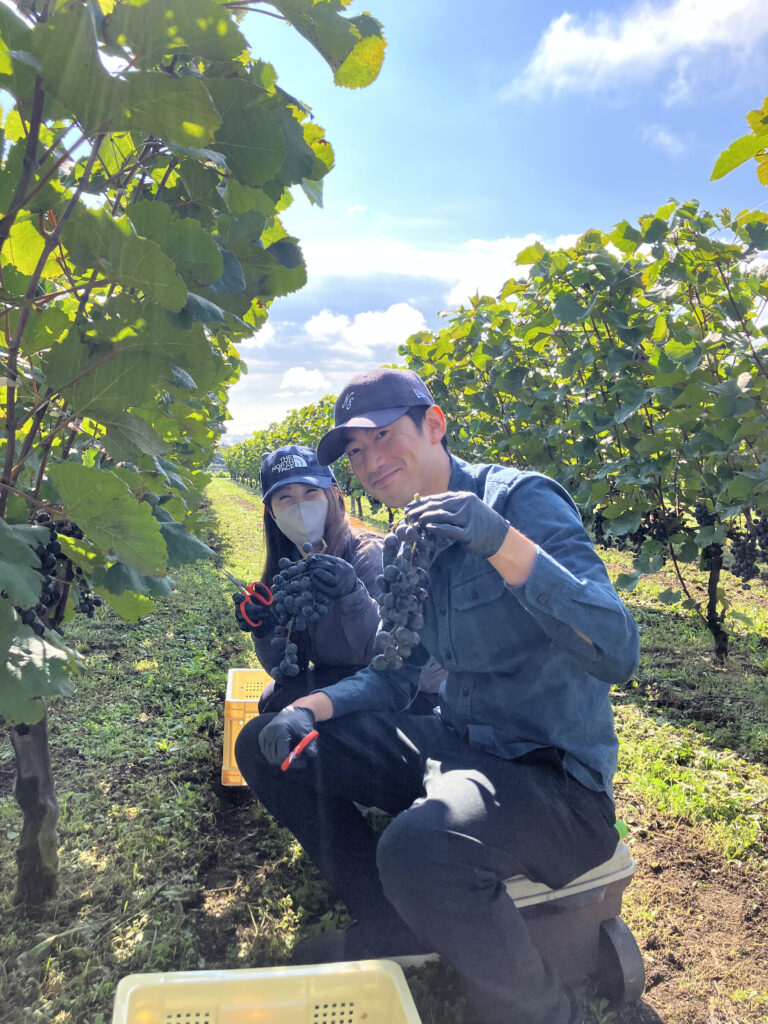 ピノ・ノワール、シャルドネ、マスカット・ベリーAなどの収穫に挑戦。
