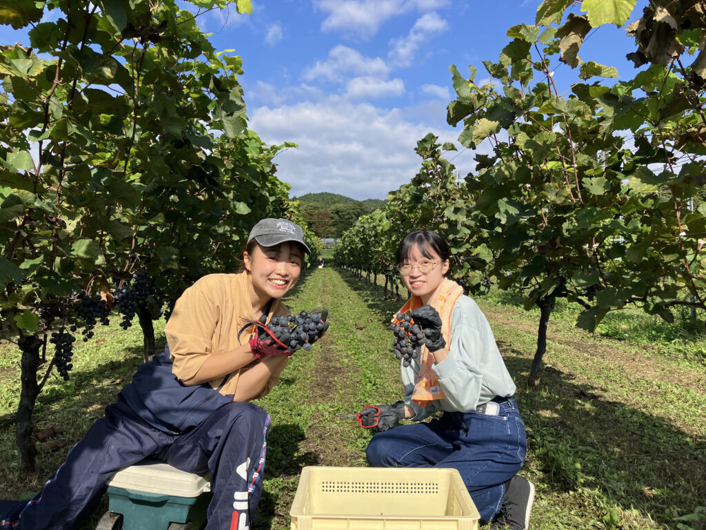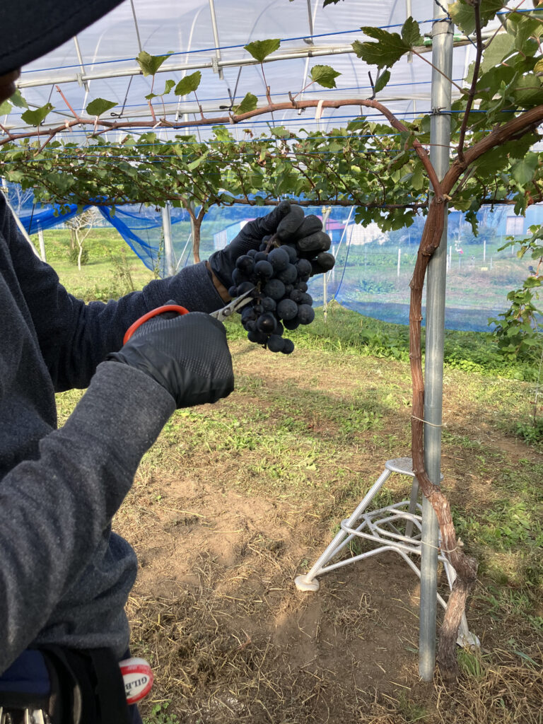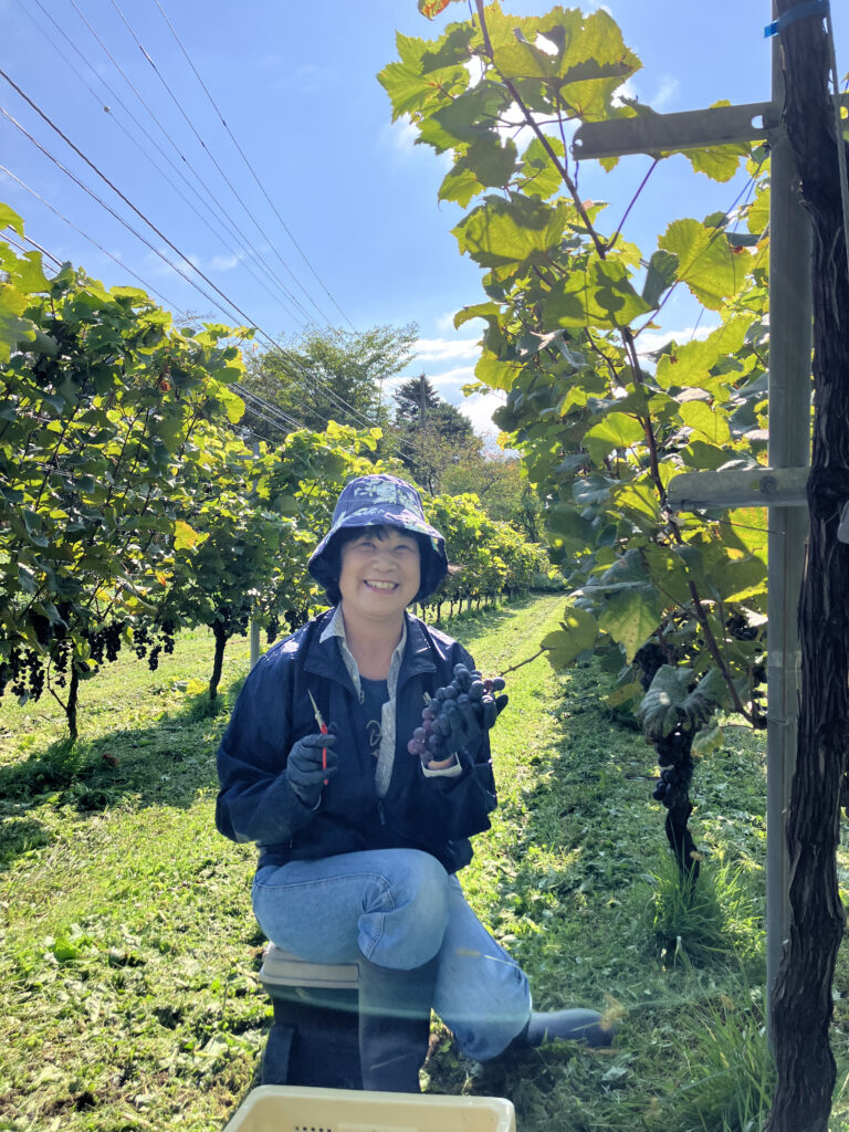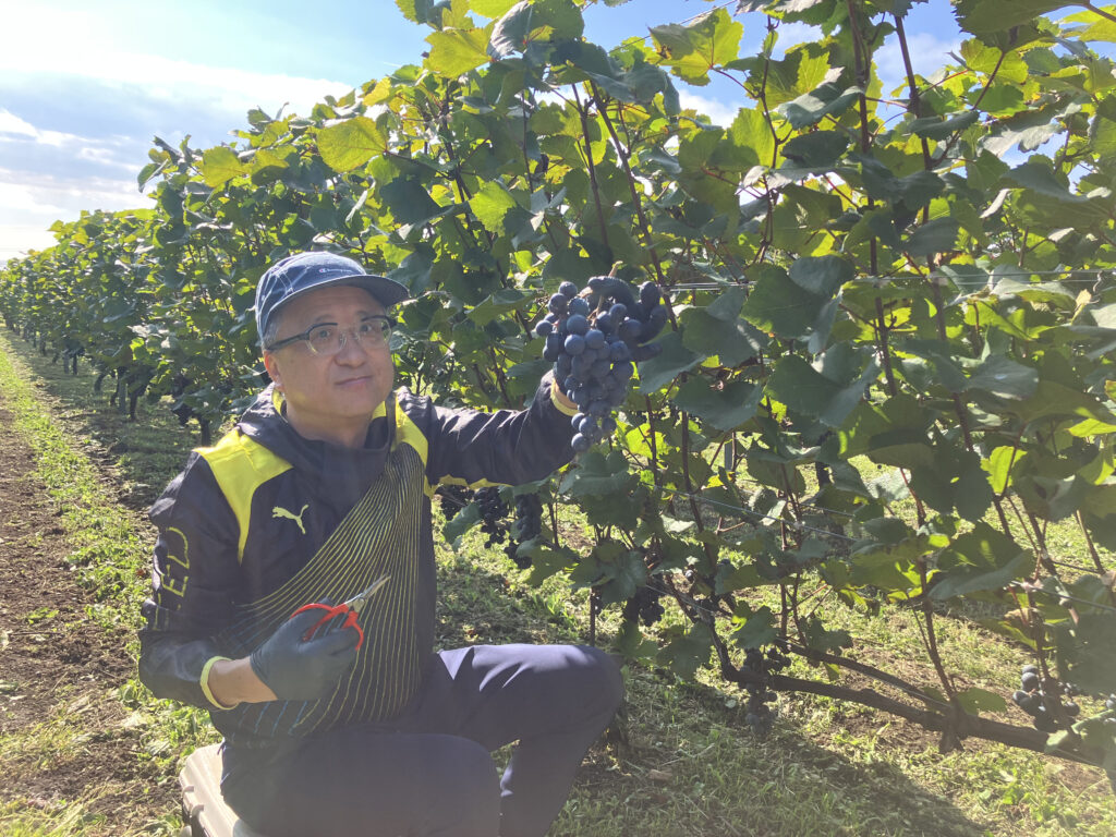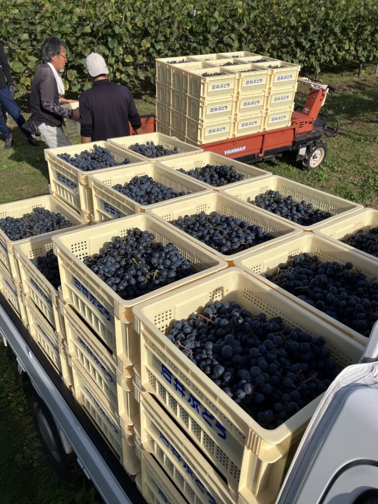 ピノ・ノワール、シャルドネ、マスカット・ベリーAなどの収穫に挑戦。