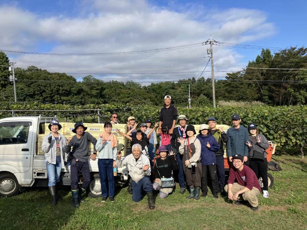 秋晴れに恵まれたこの日、参加者10名が板室のぶどう畑に集まり、