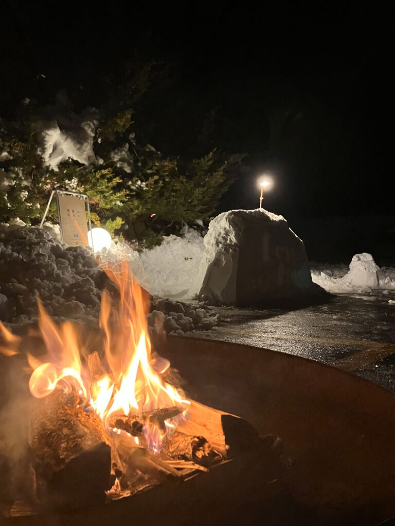 田口シェフの提案により、駐車場での焚き火バーを実施することに。
