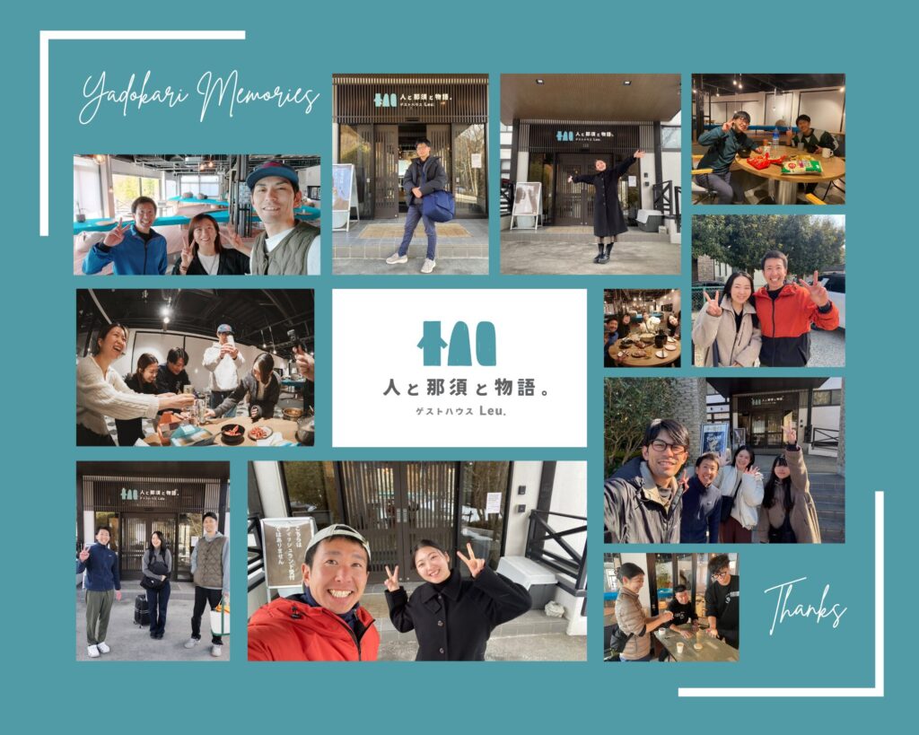 ゲストハウスLeu.に一定期間滞在しながら、午前中に共用部や温泉などの清掃を手伝ってもらい、それ以外の時間は自由に過ごす滞在プログラム。温泉に入ったり、JAMフロアで食事や会話を楽しんだり、那須の自然の中で過ごしながら「暮らすように滞在する」時間を体験する。